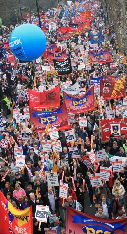 PCS contingent on the half-million strong TUC demo, central London, 26 March 2011, against the government's cuts, photo Senan (Click to enlarge)