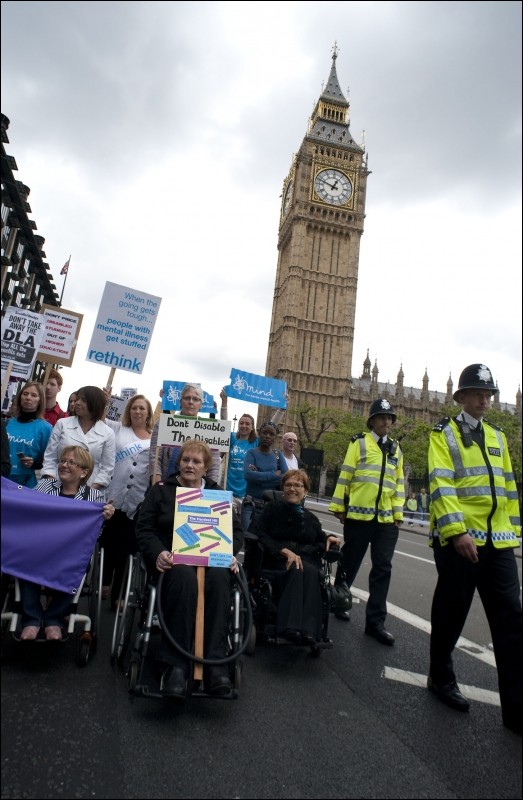 Thousands of people with disabilities, along with their families, carers, supporters etc, protested in central London on 11th May against government spending cuts.