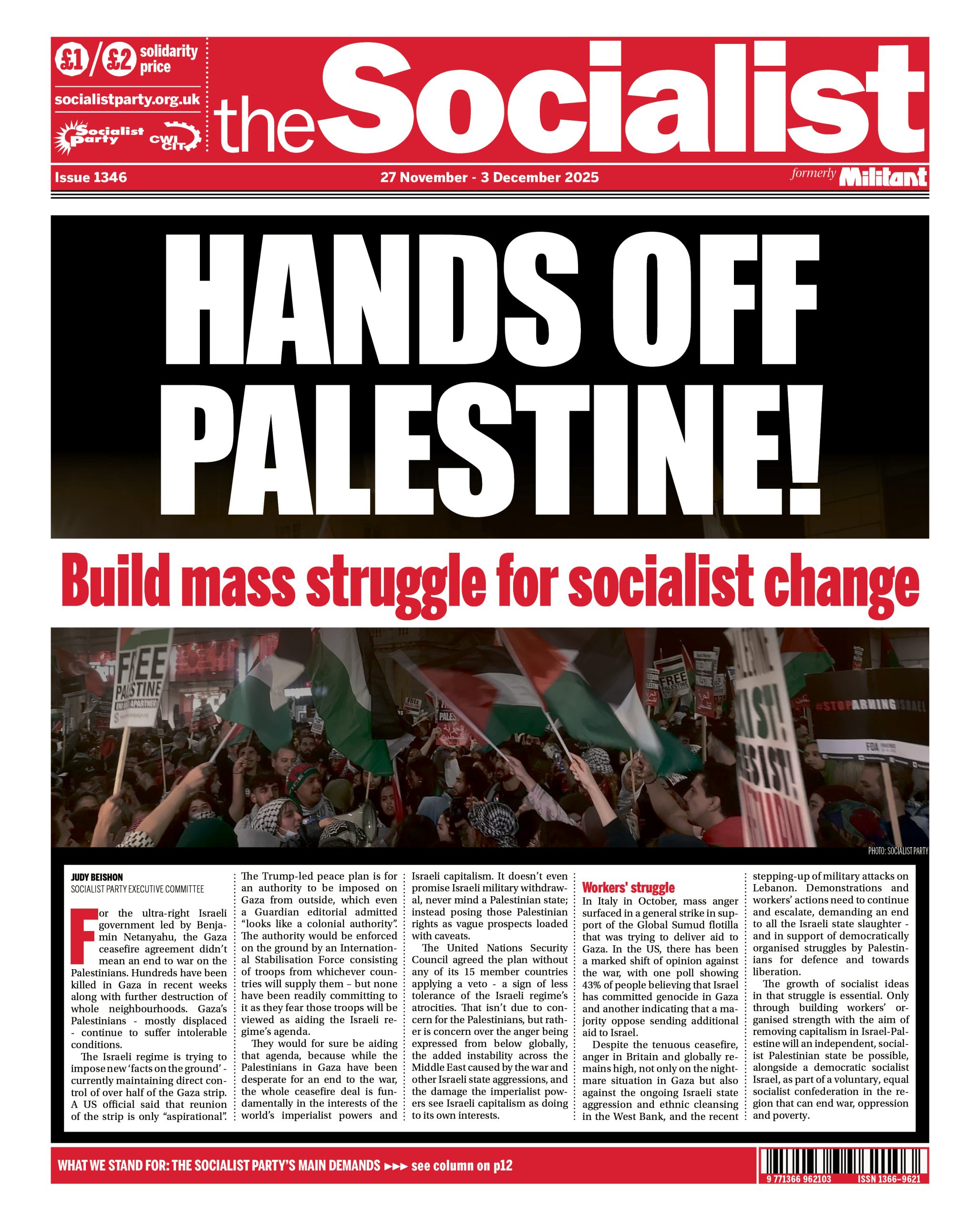 Despite the tenuous ceasefire, anger in Britain and globally remains high, not only on the nightmare situation in Gaza but also against the ongoing Israeli state aggression and ethnic cleansing in the West Bank, and the recent stepping-up of military attacks on Lebanon. Demonstrations and workers’ actions need to continue and escalate, demanding an end to all the Israeli state slaughter – and in support of democratically organised struggles by Palestinians for defence and towards liberation.