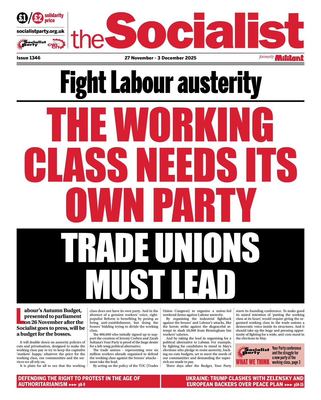 Three days after the Budget, Your Party starts its founding conference. To make good its stated intention of ‘putting the working class at its heart’, would require giving the organised working class in the trade unions a democratic voice inside its structures. And it should take up the huge and pressing opportunity of fighting for a wide, anti-cuts stand in the elections in May.