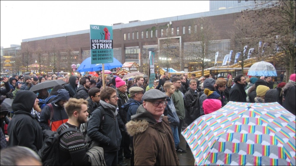 Later, at a rally organised by the UCU in support of the strike action attended by hundreds of strikers, the need was stressed for all workers to seize the opportunity afforded by the 12 December general election to vote in an anti-austerity government that will invest in our education system and end the unfair trade union laws which prevent workers from across all industries joining in the united struggle for better pay and conditions for all working class people.