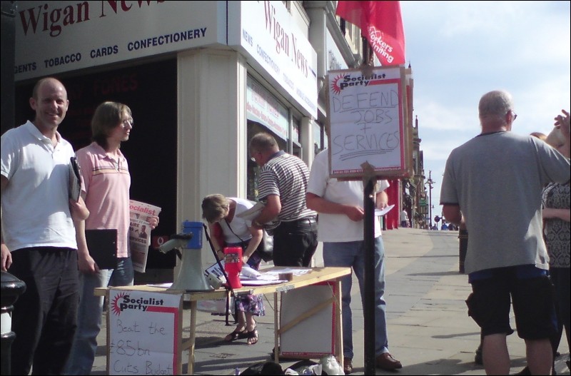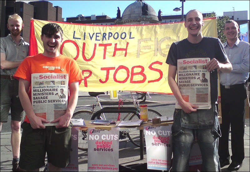 A successful protest was jointly organised by North Staffordshire Shop Stewards Network, Youth Fight for Jobs and Stoke Socialist Party against the government's cuts on budget day, 22 June, which got coverage in the local paper and a live interview on BBC Radio Stoke.