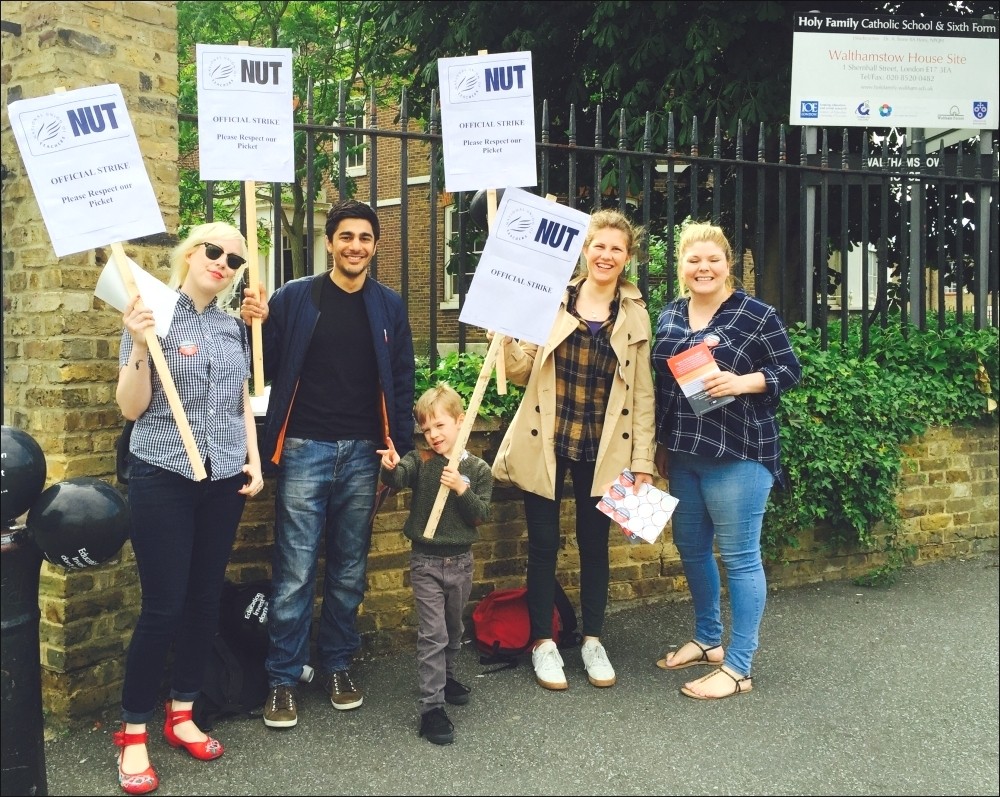 "We're striking because of the cuts to education and the threatened forced academisation which is pretty much still on the Tories' agenda. Other issues include class sizes, the marginalisation of arts subjects. I've got Teddy, my five year old, here with me and I worry about what it's going to be like for him in school."