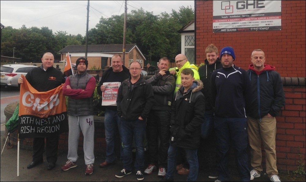GMB members at roofing manufacturer Redland in Cale Lane, Wigan, have taken five days of strike action in defence of their shop steward who has been dismissed by the company in dubious circumstances. Last year the company tried to force him out with a severance payment and confidentiality clause. When he refused they waited until he was involved in a minor road collision with a parked vehicle and then dismissed him, even though it was an accident and he reported it straight away. Strikers told me that no-one else would have been dismissed over such an incident. The GMB, and the GMB members on the site, have stood by their rep, and the strike also got support from the bakers' union from the Hovis site down the road. They reported excellent support from Wigan Trades Council over the week of the strike.