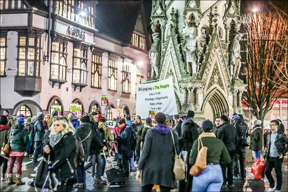 Despite freezing cold weather, more than 50 people gathered at the Clock Tower in Leicester on 20th January, to protest against the inauguration of Donald Trump.