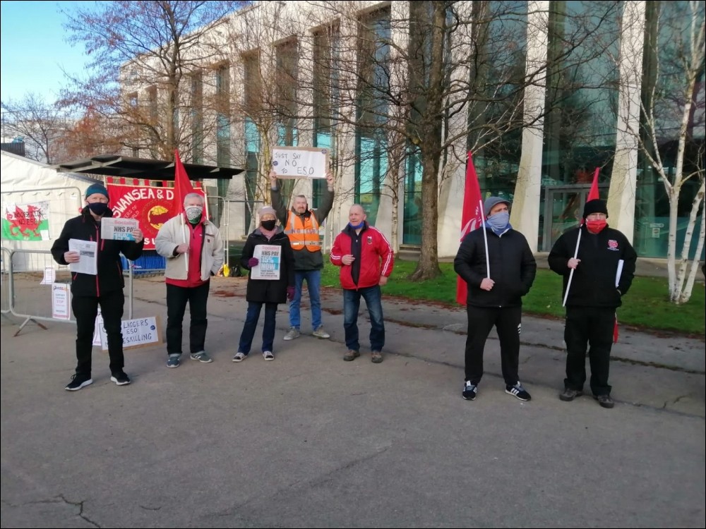 Swansea Trades Council and Swansea Socialist Party members again joined the protest in solidarity. This was much appreciated by the Unite members.