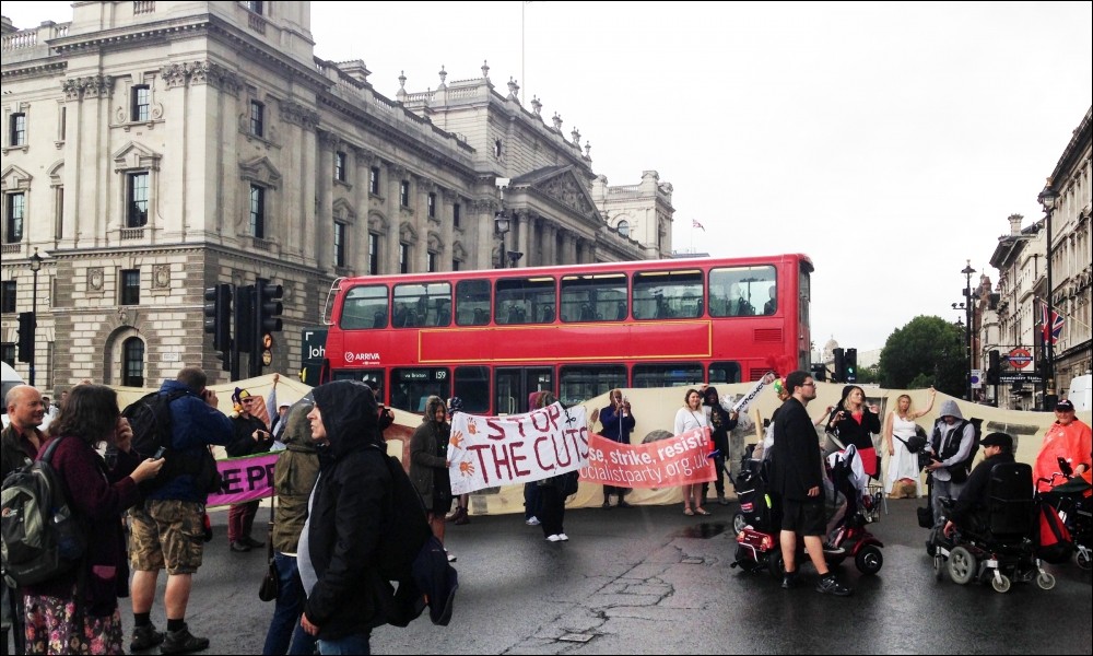 Politicians for the rich were protected by aggressive police lines while they made decisions to hammer the poor. The abolition of the Independent Living Fund and changes to Employment and Support Allowance are just the latest savage cuts meted out on disabled people. People have died as a result of cuts to disability benefits and sanctions.
