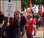 Hundreds of First West Yorkshire bus drivers and engineers were on strike in Bradford on 27-28 April, officially against the transfer of a bus service to the Halifax depot with a loss of eight jobs, writes Iain Dalton.