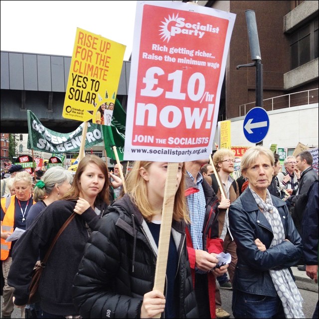 The current UK 'living wage' levels according to the Living Wage Foundation are £7.85 an hour and £9.15 an hour in London. The Socialist Party, along with most trade unions, campaigns for the immediate implementation of a £10 an hour minimum wage as a step toward a real living wage.