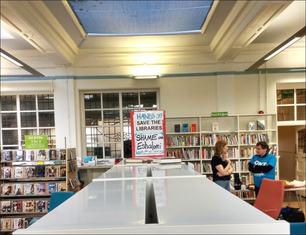 Sadiq Khan, Labour's London mayoral candidate, has so far declined to support the libraries campaign. Khan supporters even tried to cover and remove Carnegie protesters' placards at the Blairite's launch events.