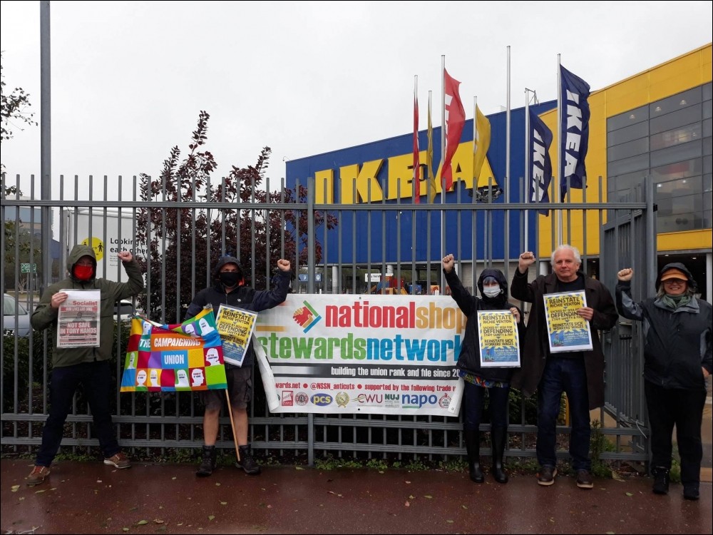 Protests were held at six Ikea stores on 3 October, demanding the reinstatement of sacked shop steward Richie Venton, and full average wages for all sick workers.